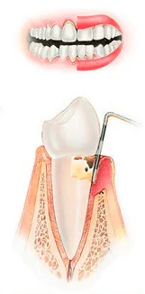 Убыль костной ткани распространяется на соседние зубы и их корни постепенно обнажаются!