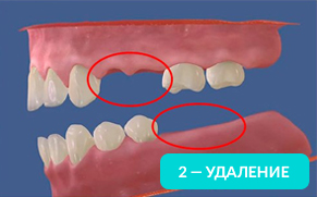 На рисунке справа видно, какие щели между зубов образуются уже через год, после удаления.